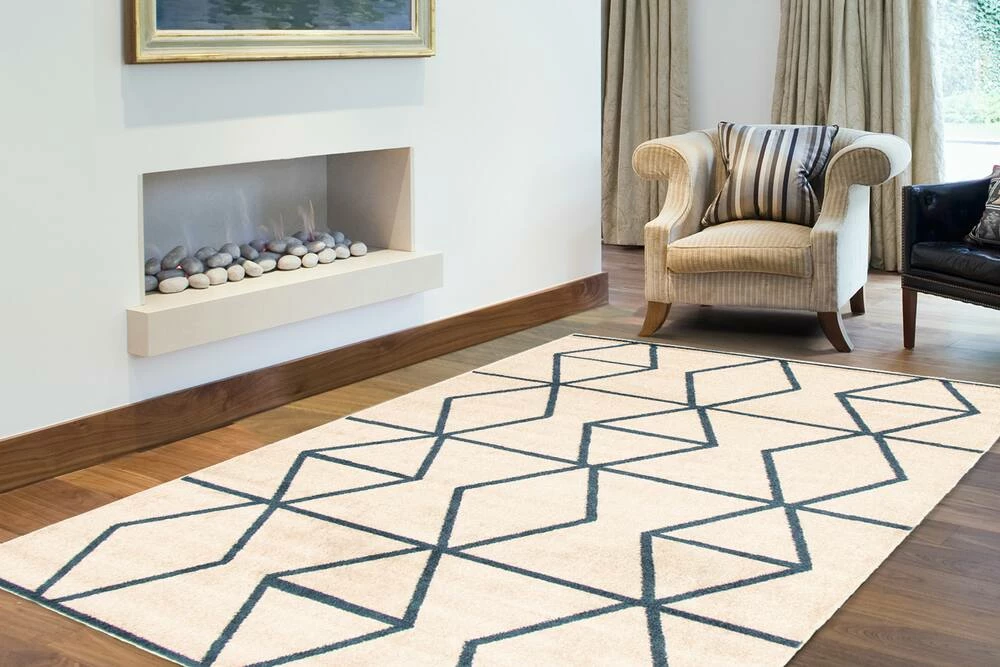 - Ivory/Blue modern/contemporary abstract indoor area rug