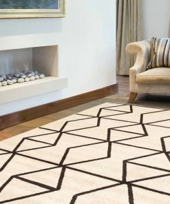 - Ivory/Brown modern/contemporary abstract indoor area rug