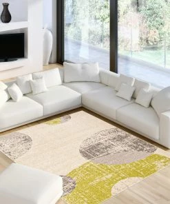 - Ivory/Green modern/contemporary abstract indoor area rug