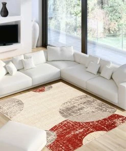 - Ivory/Red modern/contemporary abstract indoor area rug