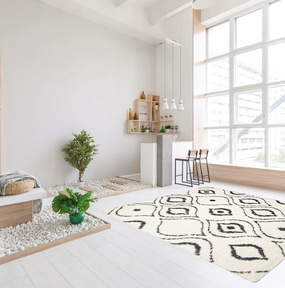 - Contemporary, modern ivory indoor shag