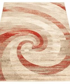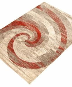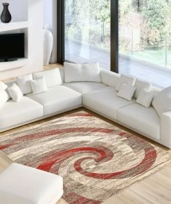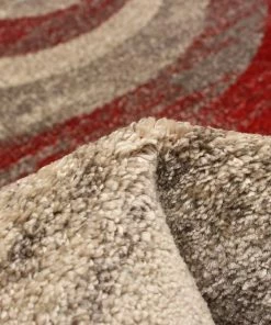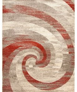 - Ivory/Red modern/contemporary abstract indoor area rug