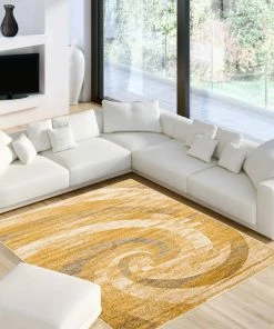 - Ivory/Gold modern/contemporary abstract indoor area rug