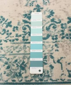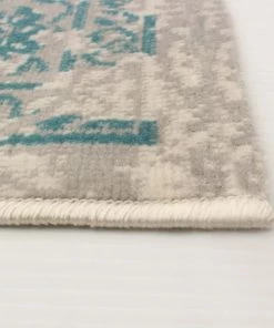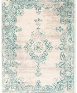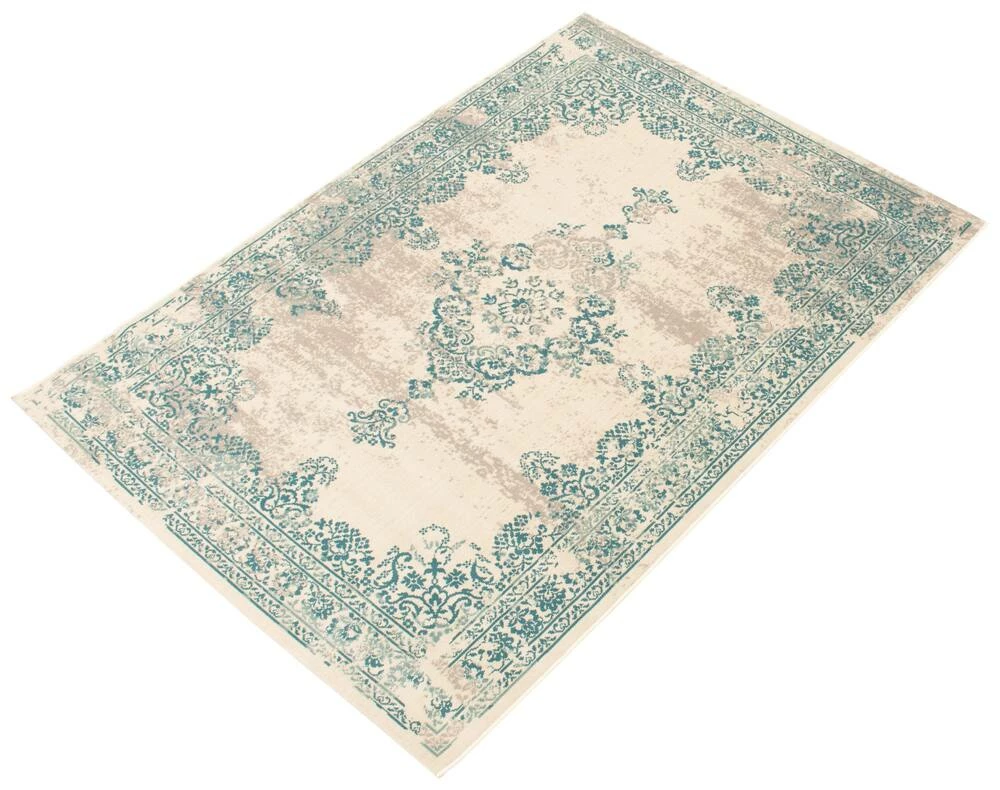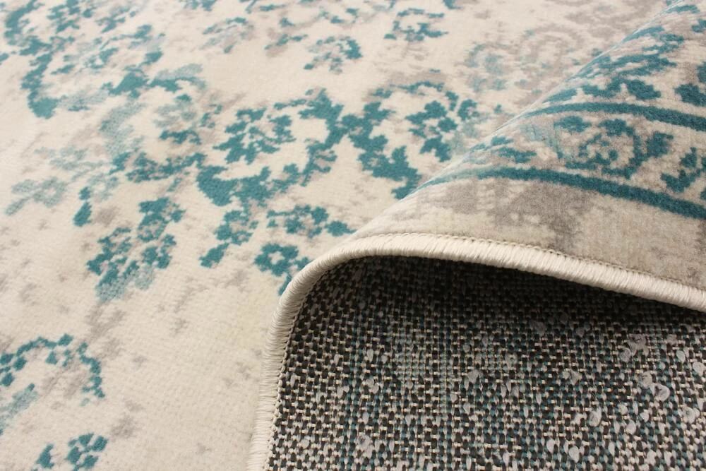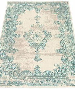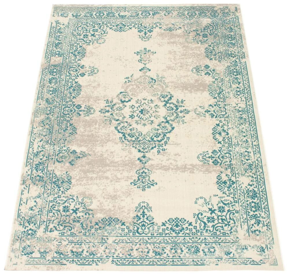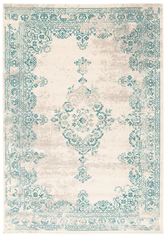 - Traditional, transitional aqua indoor area rug