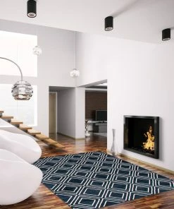 - Contemporary, modern navy/white indoor area rug