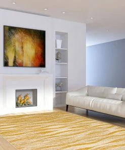 - Ivory/Gold modern/contemporary abstract indoor area rug