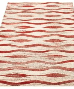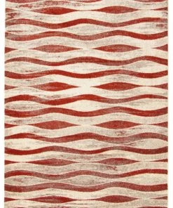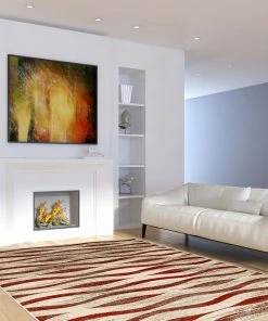 - Ivory/Red modern/contemporary abstract indoor area rug