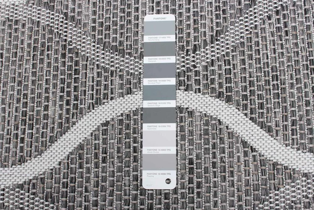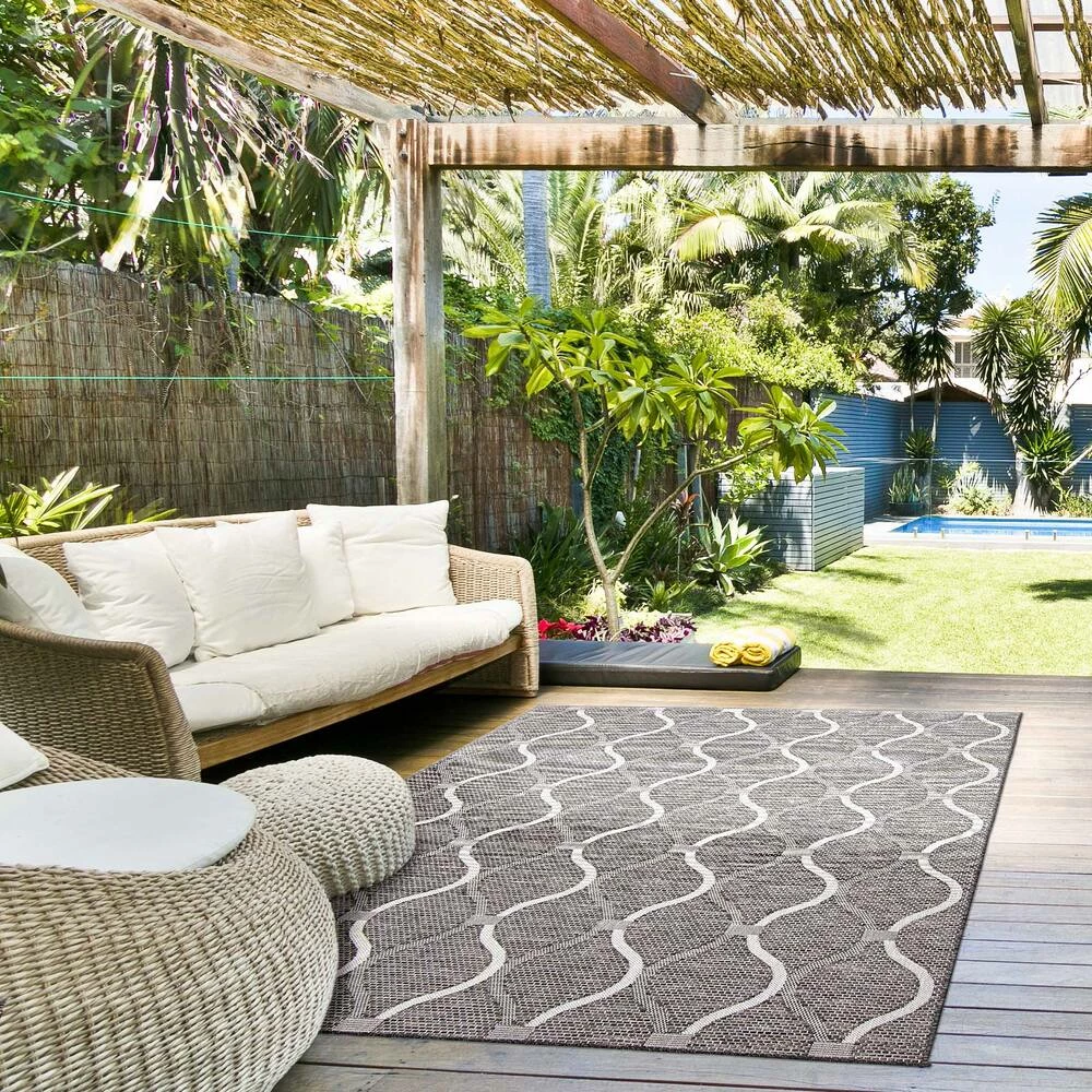 - Contemporary geometric grey indoor/outdoor area rug