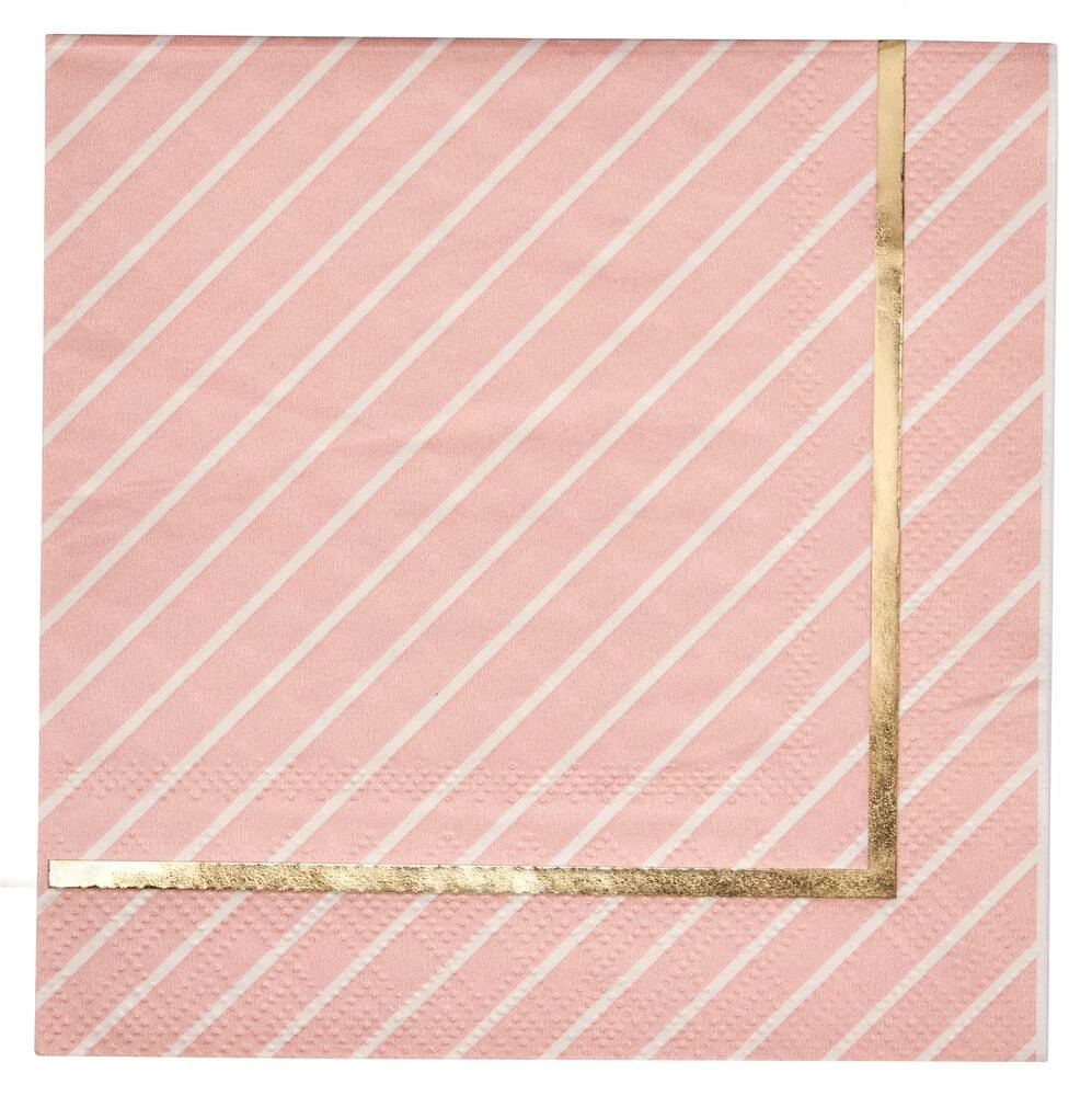 - Sophistiplate Solid Pink 3-Ply Cocktail Napkins are blush pink trimmed in gold